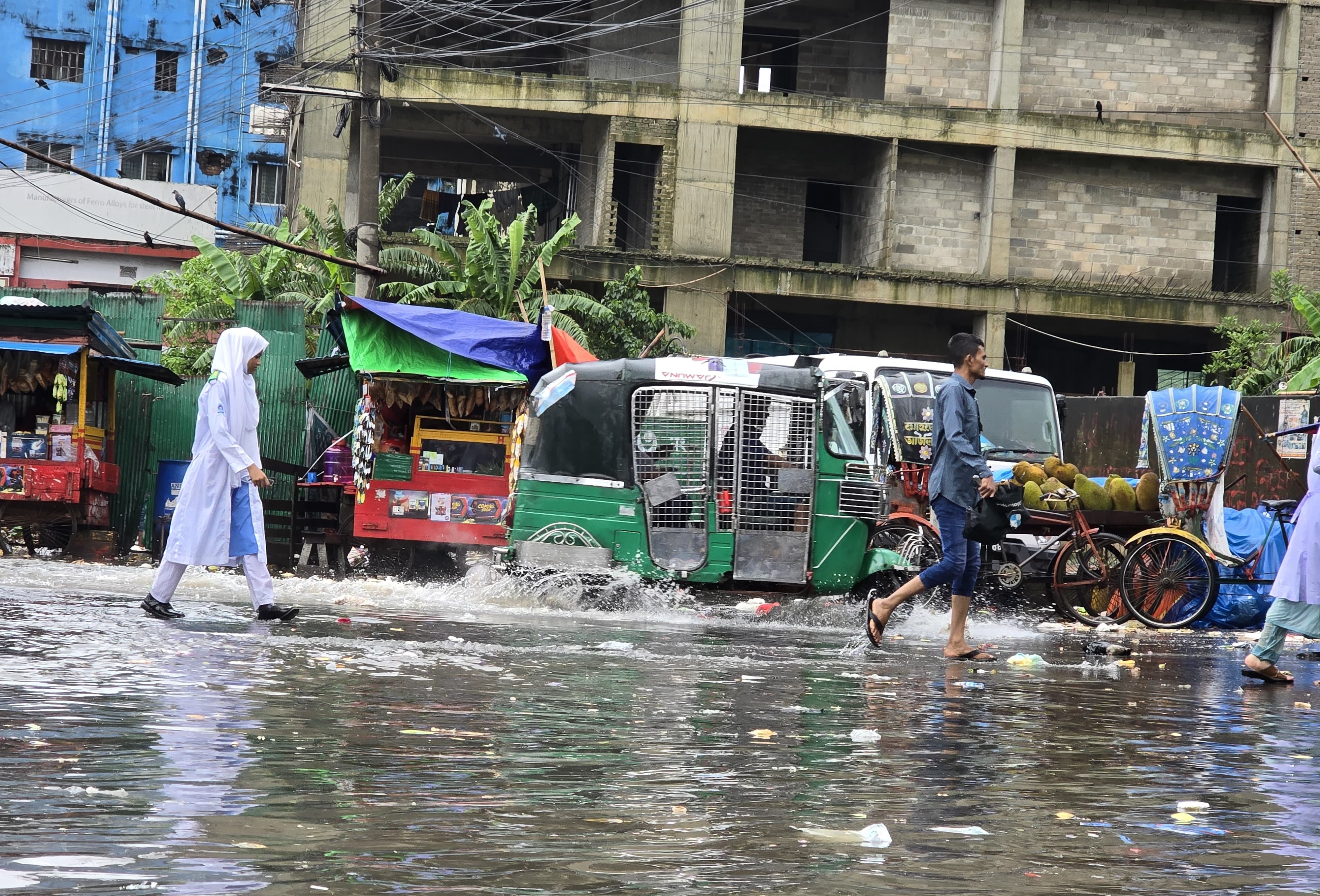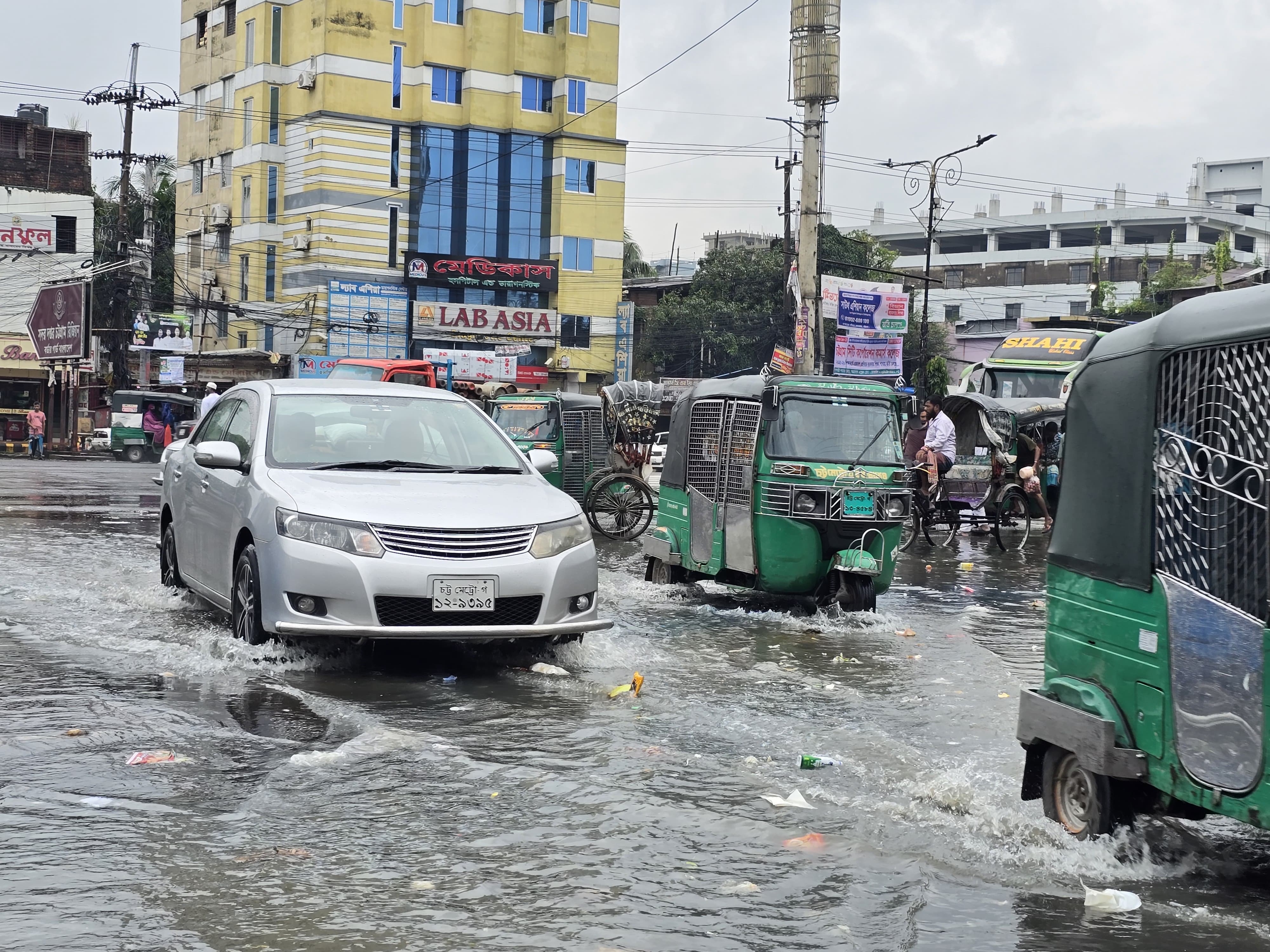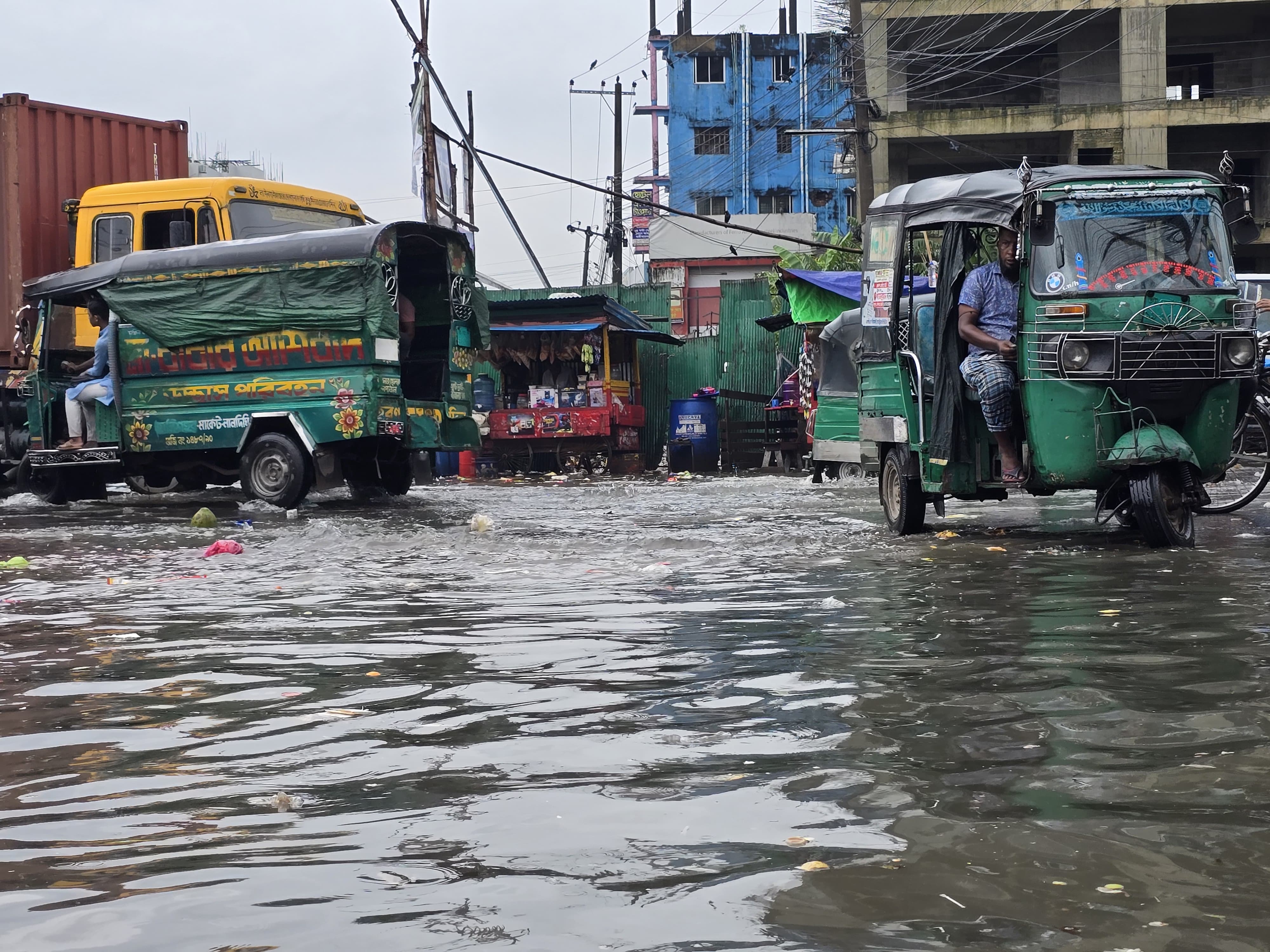 সোমবার (২৭ জুলাই) নগরের নয়া বাজার মোড় এলাকার সেই জলাবদ্ধতার চিত্র তুলে ধরেছেন মাহমুদ হাসান; নিজস্ব প্রতিবেদক, সিভয়েস২৪।